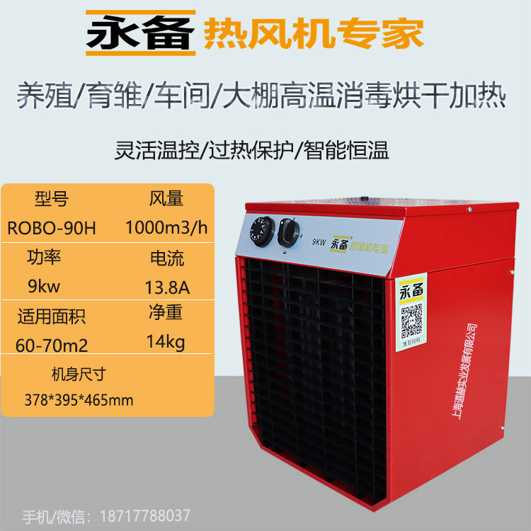 永备电热风机9kw厂房养殖育苗烘干加温暖风机